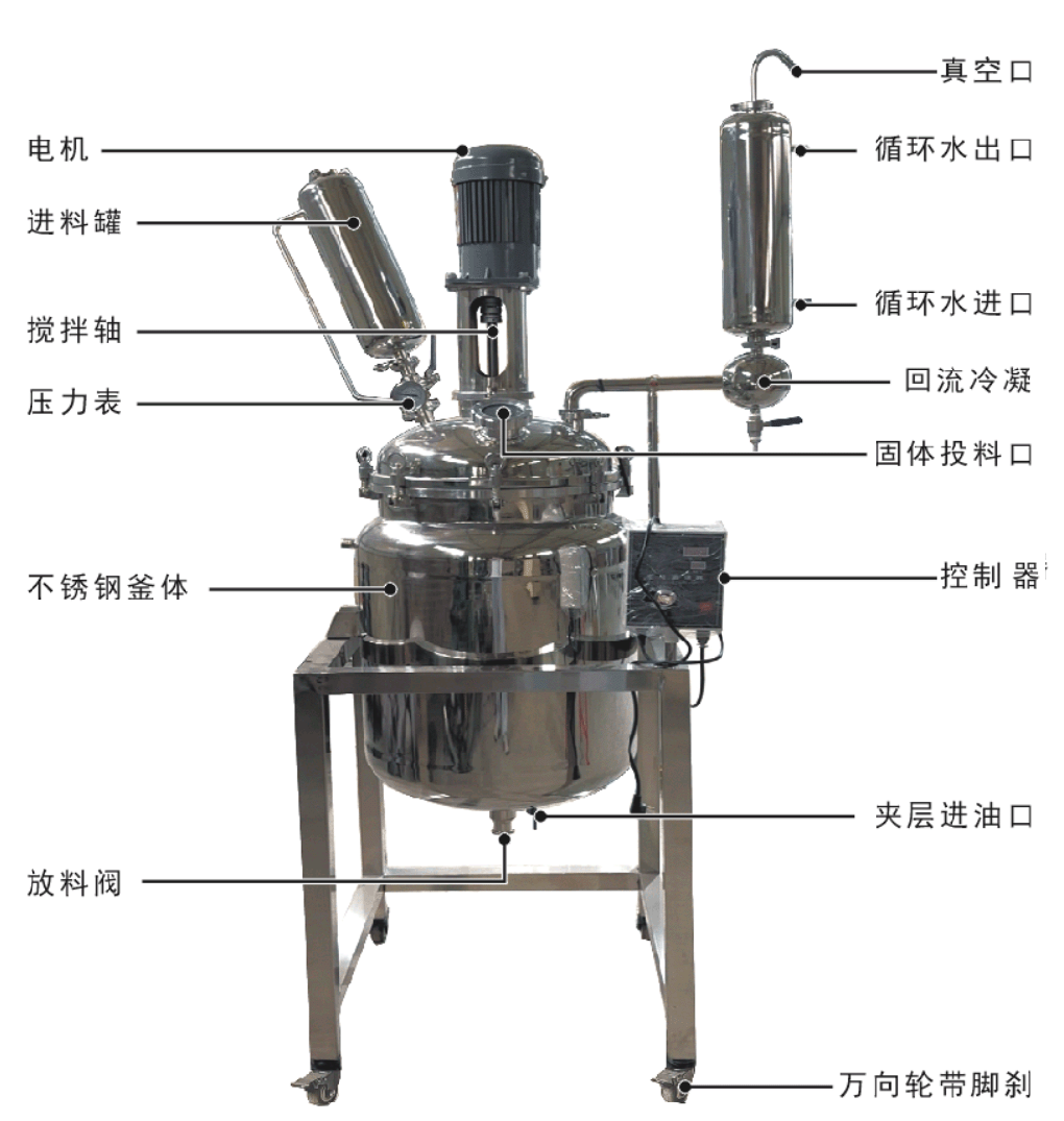 雙層不銹鋼反應(yīng)釜為雙層不銹鋼設(shè)計(jì),內(nèi)層放入反應(yīng)溶媒可做攪拌反應(yīng),夾層通上不同的冷熱源(冷凍液,熱水或熱油)做循環(huán)加熱或冷卻反應(yīng)。在設(shè)定恒溫條件下